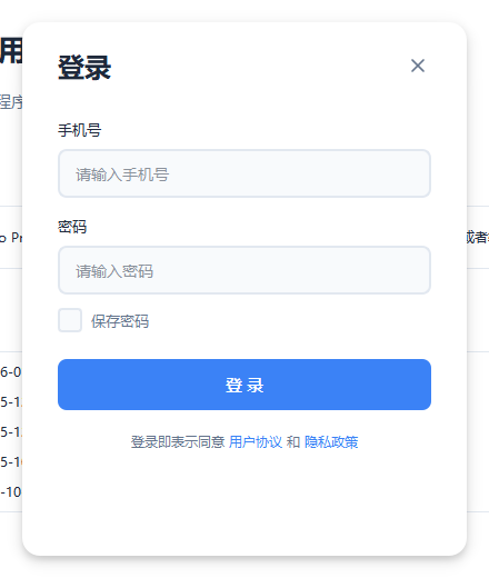 登录账号:在弹出的登录窗口中输入您的手机号和密码,点击 “登录”。(参考截图 2)