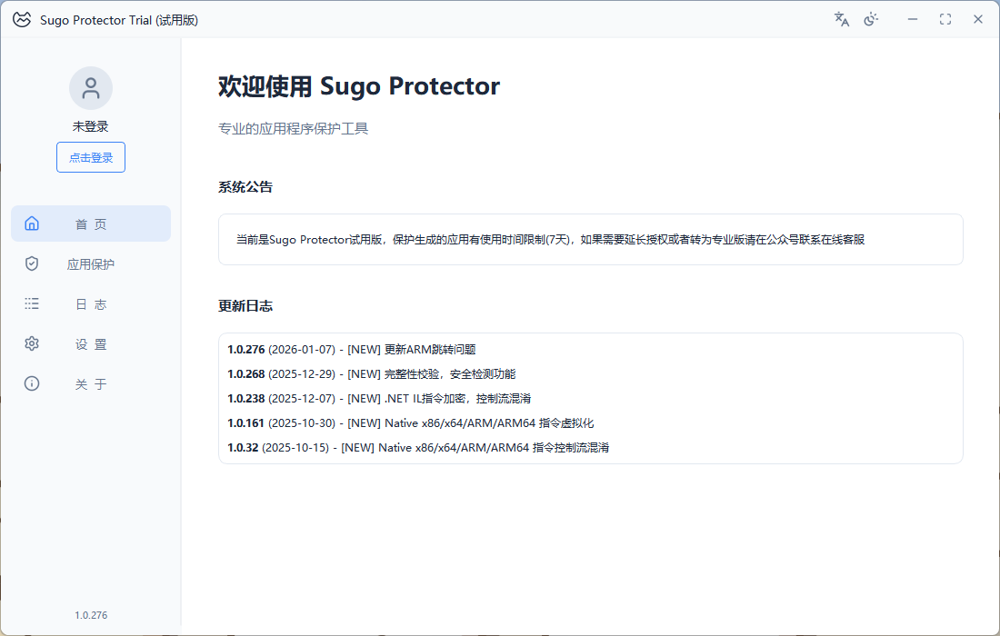 欢迎使用 Sugo Protector。本工具致力于为您的二进制文件提供专业级的安全保护,涵盖代码混淆、虚拟化、压缩及反调试等多种技术手段。
